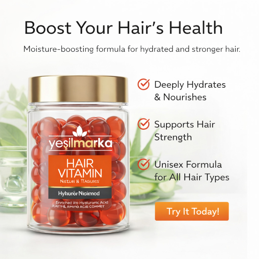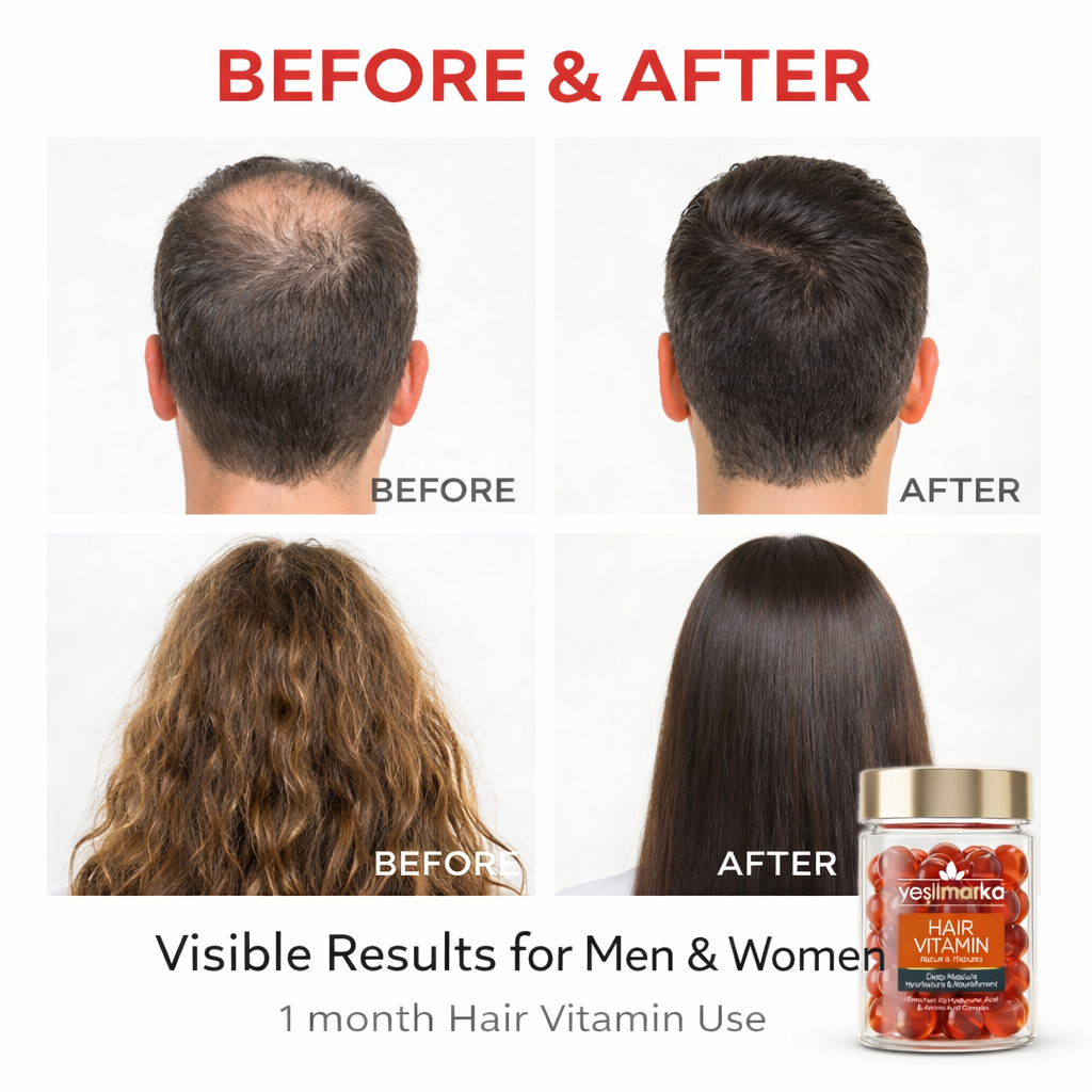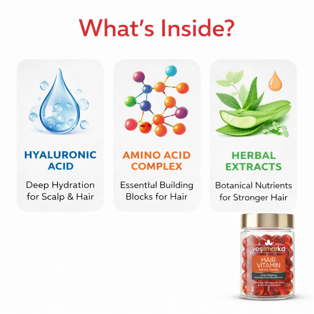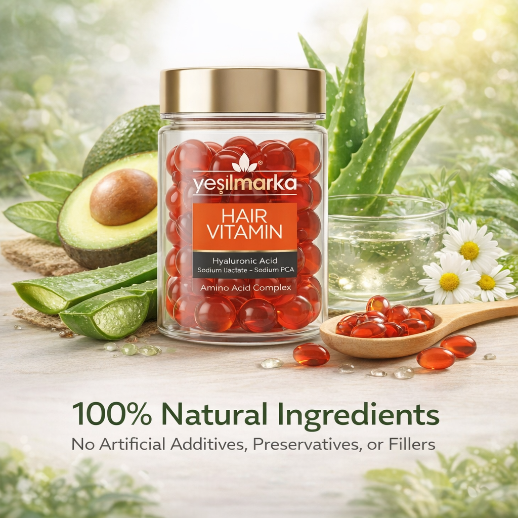 Give your hair the care it deserves with Yeşilmarka Hair Vitamin Capsules, powered by 100% natural ingredients.